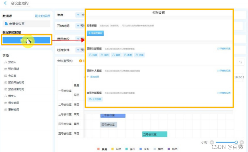 给团队的成员设置此甘特图的报表权限,也就是该报表的数据哪些人可以操作报表的数据,分别有什么操作权限。