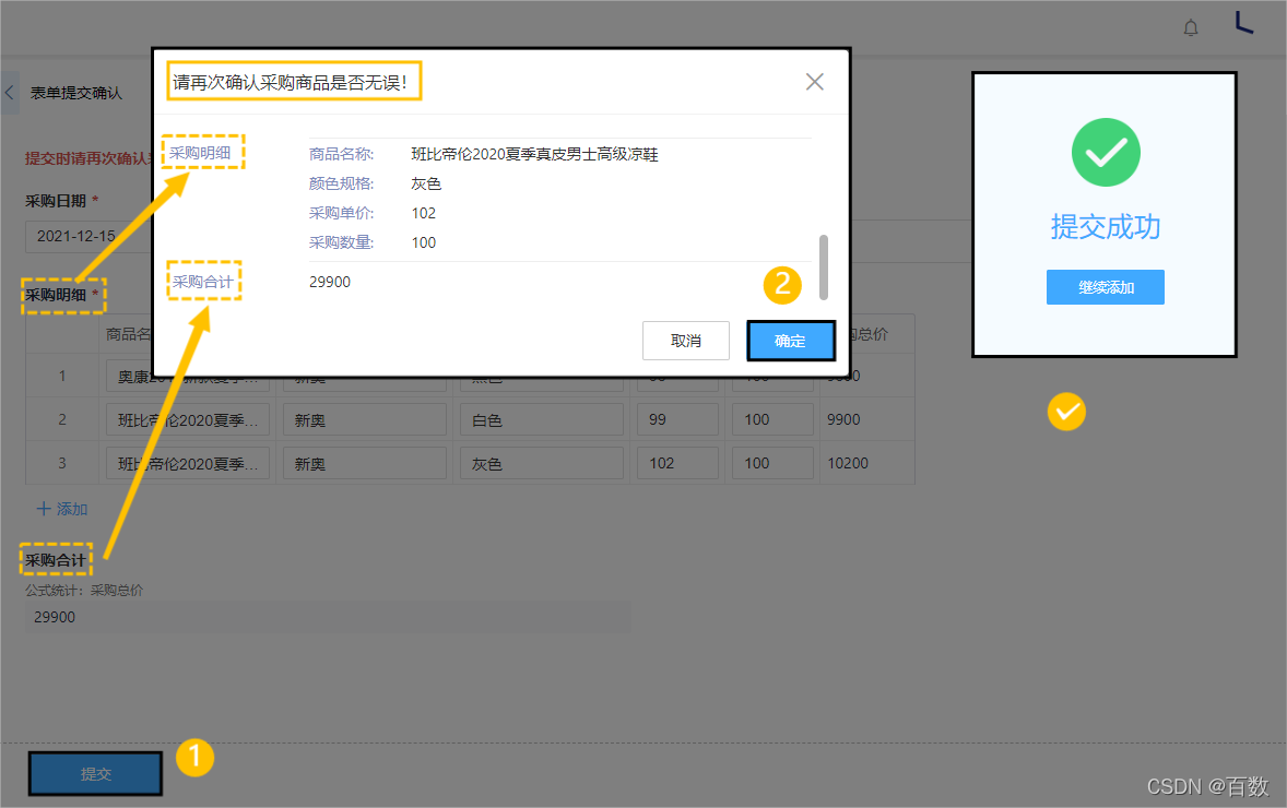 *如采购商品填写商品信息的明细、价格核对,提交保存时候的再次确认。