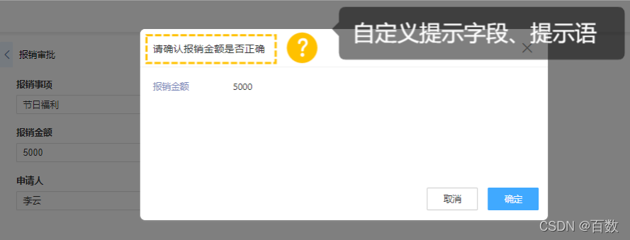针对不同的业务场景可以自定义提示的内容,比如提前告知易误操作、提交错误内容等,让操作者主动去确认输入的重要数据无误。