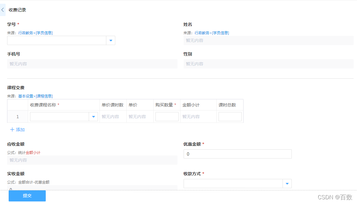用于登记学生报课的收费明细,实现交易记录实时可查。