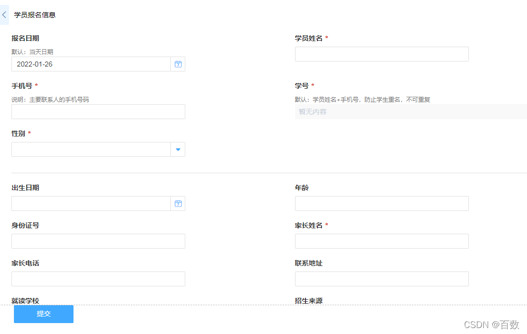 用于登记报名学生、家长的基本信息,便于日常管理以及后续的续费跟进。