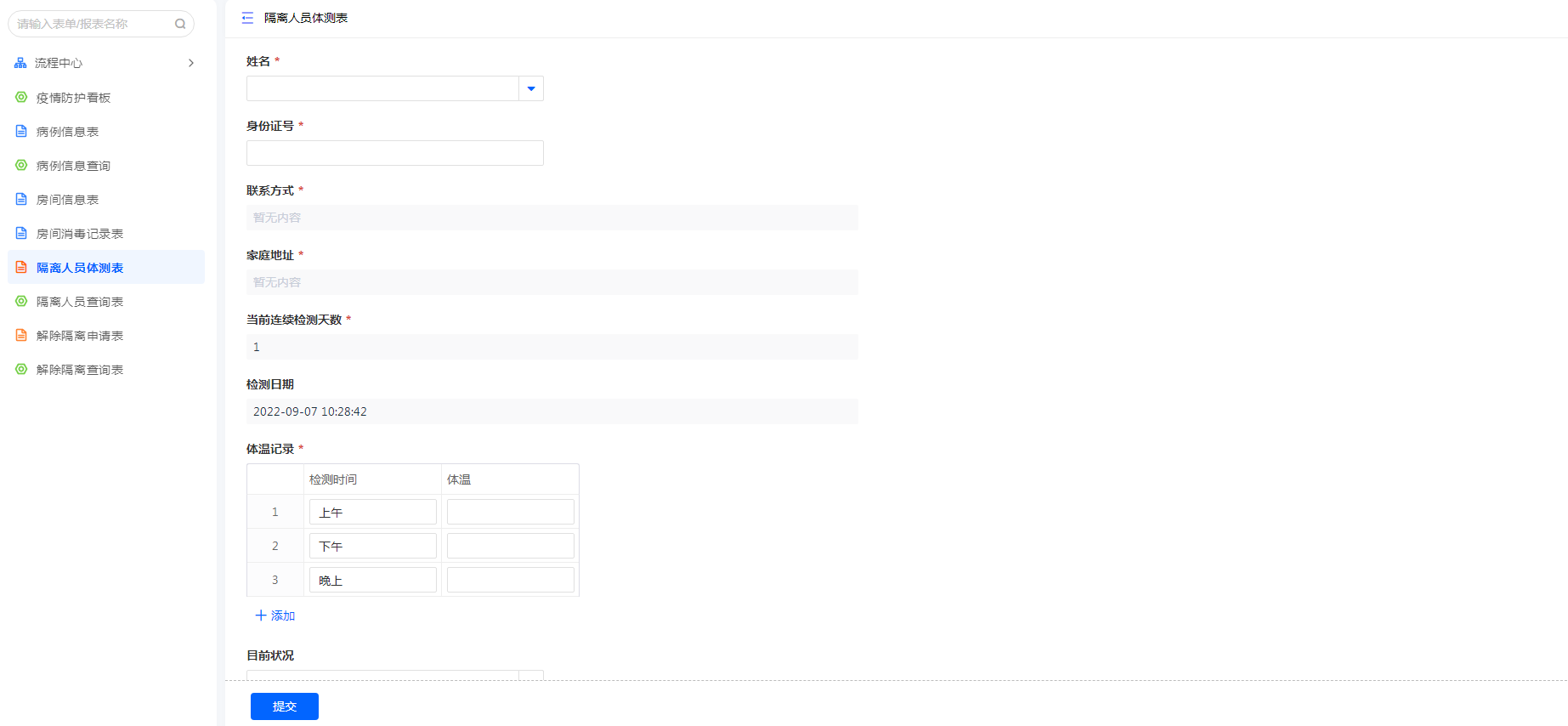 隔离人员体验表主要是对隔离人员进行上中晚全天的体温记录,从而便于判断隔离人员的身体状态。如遇特殊情况也可以及时处理,确保隔离人员能够健康安全。