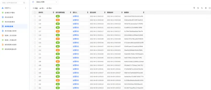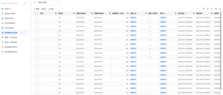 为了符合酒店疫情防控的需求,百数此次发挥自身的优势搭建了一款疫情防控记录管理系统。主要是便于酒店每天记录病人数据,进行每日体温检测,记录消毒房间记录,记录解除隔离人员信息等管理,从而不断提高工作人员的效率与质量,便于科学精准防控,筑牢疫情防控“安全线”。