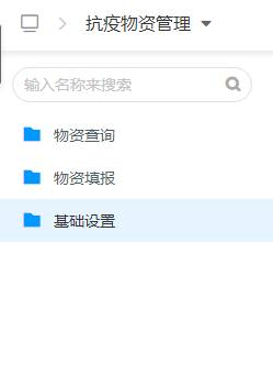 百数搭建的“抗疫物资管理”系统只要是分为物资查询、物资填报、基础设置等模板。