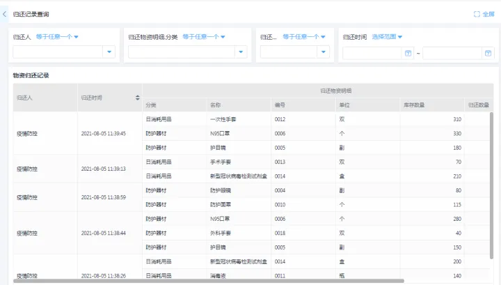 为提高防疫物资管理效率,百数推出抗疫物资管理系统,该系统通过信息化手段实现物资的闭环管理,包含物资采购、领用及归还等功能,助力社区防疫工作。
