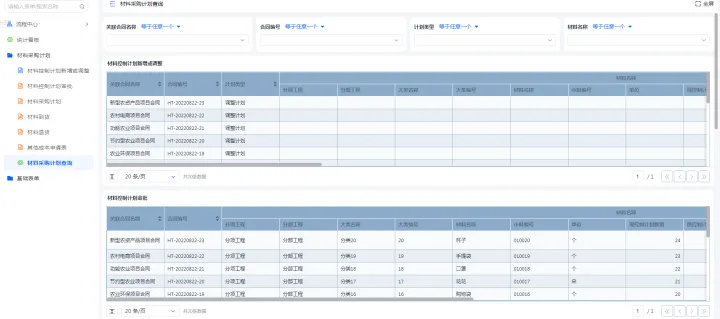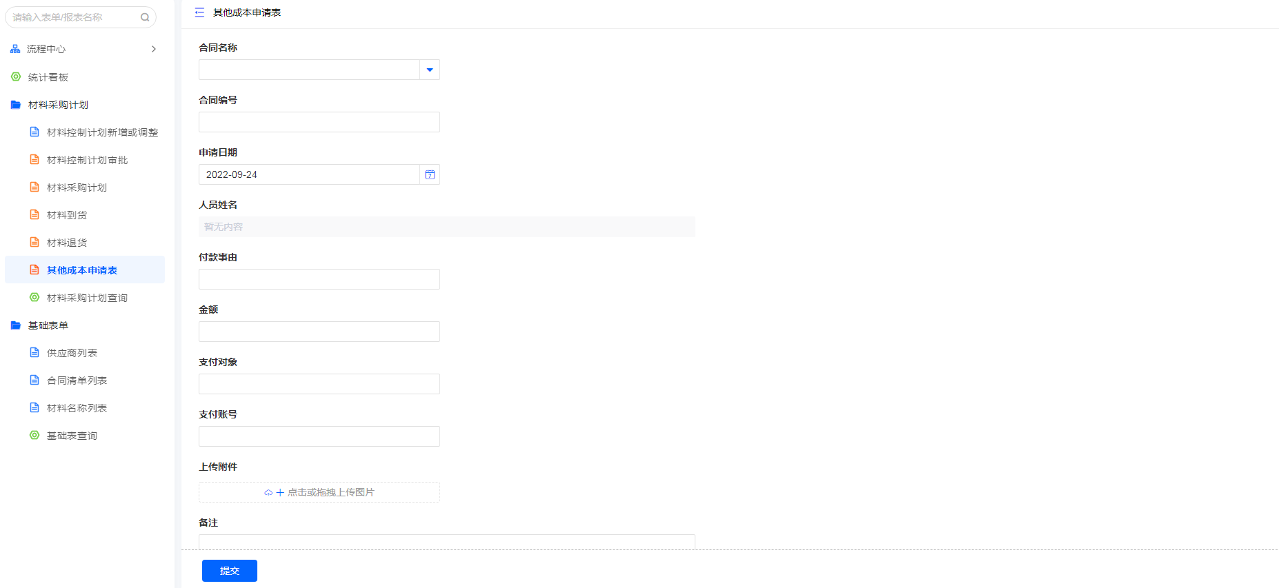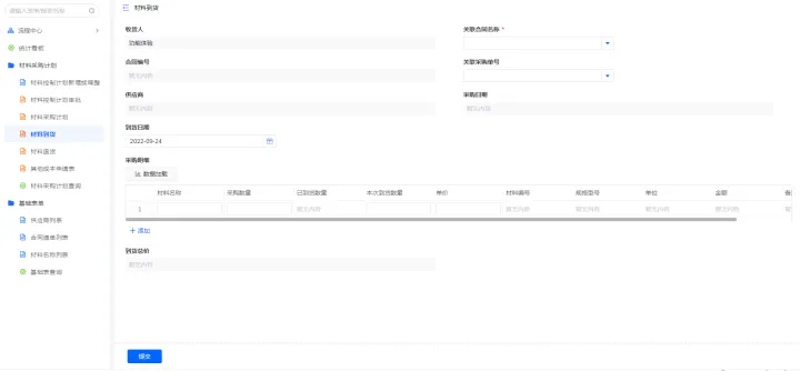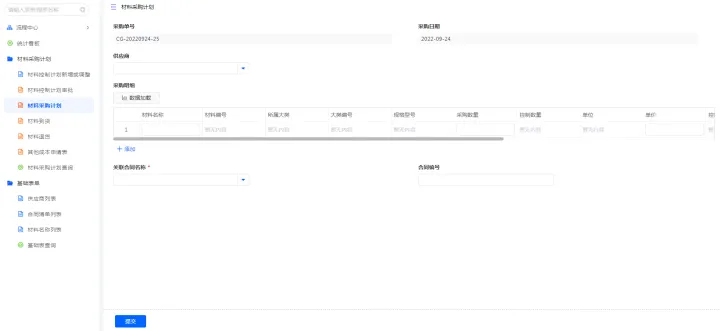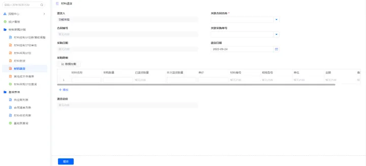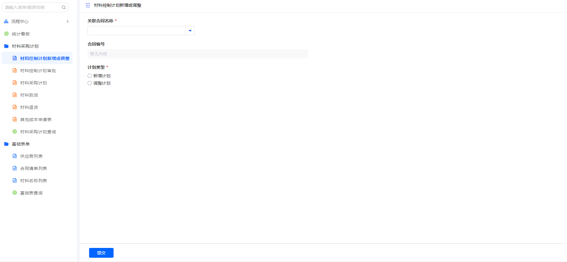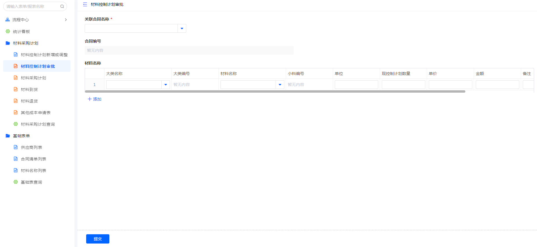 基础表单则主要是对供应商、合同清单、材料清单的基础信息管理。