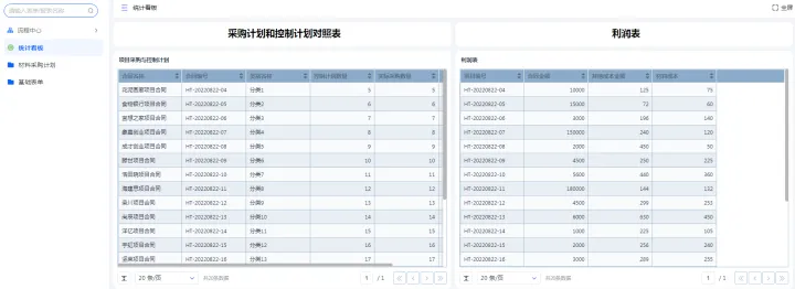 统计看板主要是查看采购计划和控制计划对照表及利润表的详情。
