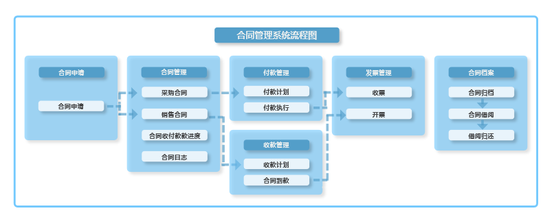 百数合同管理系统应用提供了从合同模板、合同签订、合同收付款和合同发票管理、合同归档,合同全生命周期的数字化管理手段。在该应用中合同负责人能够查看合同审批进度、款项进度和发票情况,实现全流程管控。