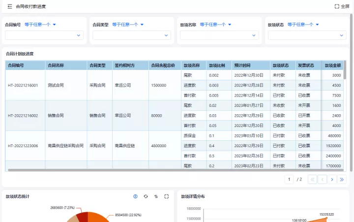 合同收付款进度报表展示的是所有合同的收付款计划进度。