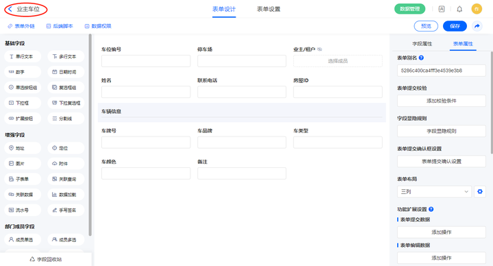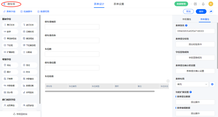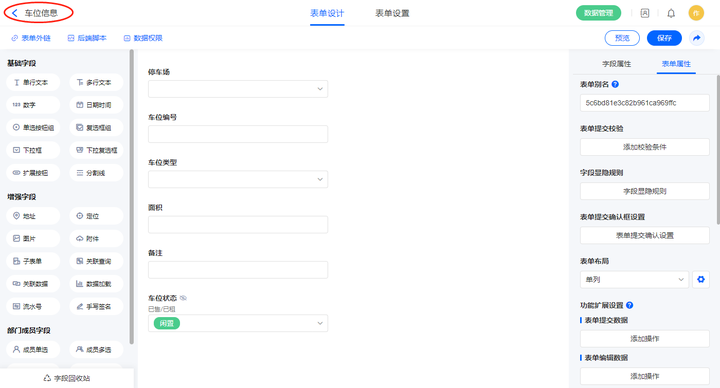 | 类型 | 单选按钮 | 车位编号 | 单行文本 |