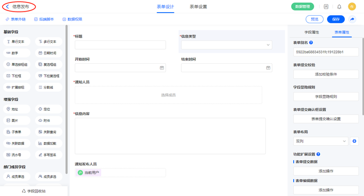 | 联系方式 | 单行文本 | 成员信息 | 子表单 |