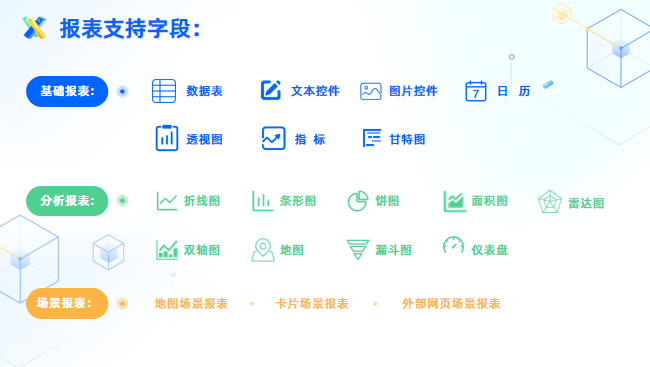 百数报表的样式,可覆盖绝大多数业务,通过报表设计,将数据以多种形式展现出来。