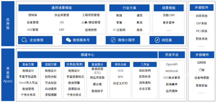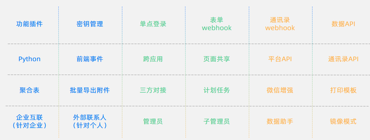 - 企业互联:16种跨平台互联组合方式,链接外部组织、联通双方企业项目数据、加深业务合作程度。