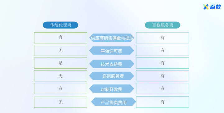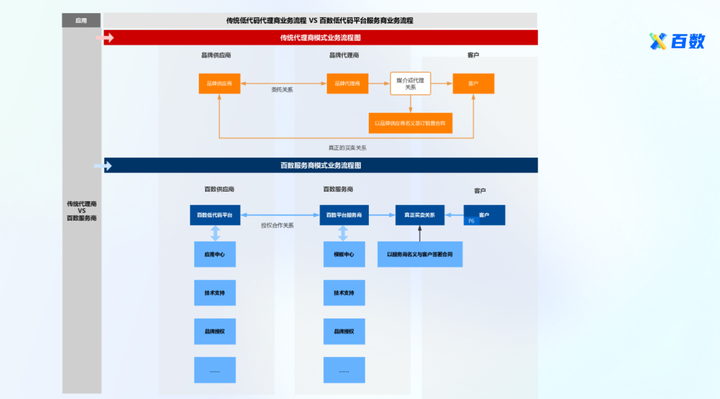 - 百数低代码服务商的业务流程是以自己名义与客户达成交易,所有的过程百数均不参与,真正实现了与客户的买卖关系。