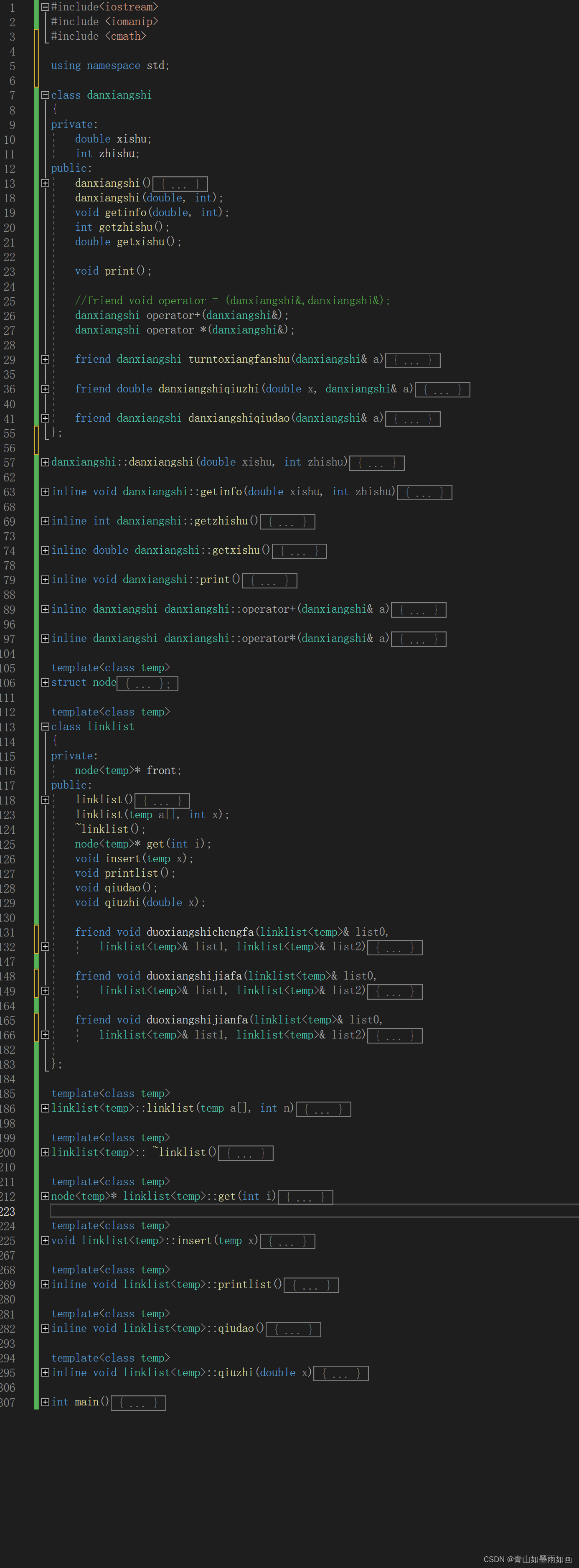 friend void duoxiangshijiafa(linklist<temp>& list0,