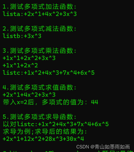 cout << endl << "5.测试多项式求导函数:" << endl;