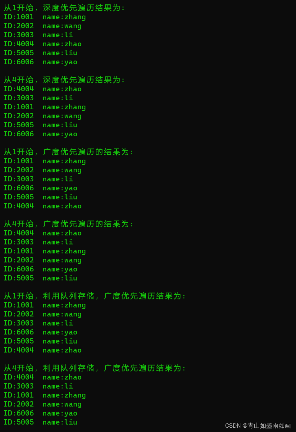 cout << "从" << v + 1 << "开始,利用队列存储,广度优先遍历结果为:" << endl;