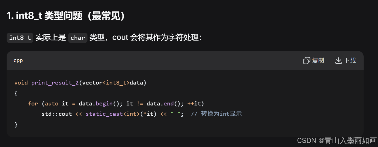 所以不能为了更节省内存空间而将vector<int>写成vector<int8_t>。