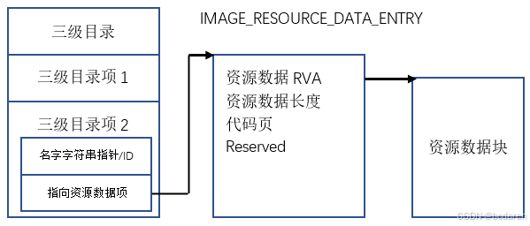 IMAGE_RESOURCE_DATA_ENTRY 是 PE(可执行文件格式)中资源表中的一个数据项,用于表示资源的实际数据。