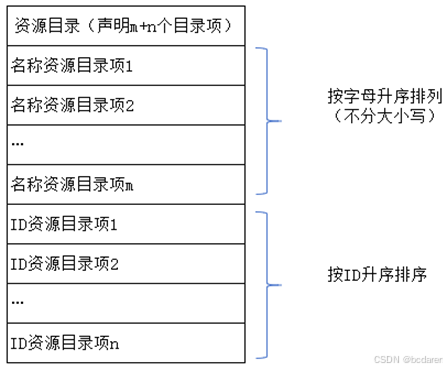 IMAGE_RESOURCE_DIRECTORY 结构后面紧跟着一个由 IMAGE_RESOURCE_DIRECTORY_ENTRY 结构组成的数组,用于表示资源目录的子目录或叶节点。每个 IMAGE_RESOURCE_DIRECTORY_ENTRY 结构表示一个子目录或叶节点,并包含了子目录或叶节点的偏移地址或资源标识符。