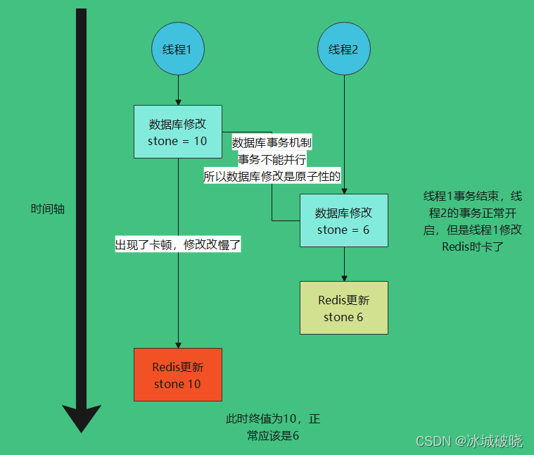 这个锁存在很多很多问题,虽然使用了finally保证了锁的释放,但是,如果在try运行时系统宕机,那么依旧会出现死锁一段时间的情况。这还不算问题最严重的地方,如果中间业务逻辑使用的时间过长,在释放锁前,Redis因为时间到了自动解锁。那么并发问题会出现,而且并不是导致这两次请求出现问题,而是后续的请求都会出问题。因为A逻辑执行结束依旧会删除lockKey,也就是释放B线程新加的锁,导致C线程也能进行,B释放C的锁让D同步进行,直接崩盘了。