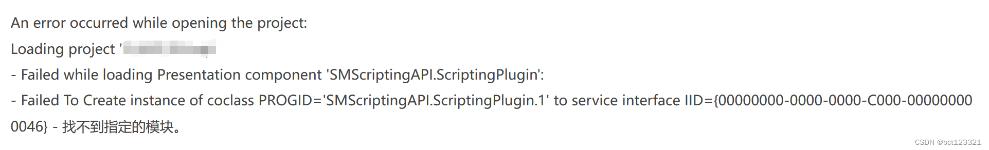 - Failed To Create instance of coclass PROGID='SMScriptingAPI.ScriptingPlugin.1' to service interface IID={00000000-0000-0000-C000-000000000046} - 找不到指定的模块。