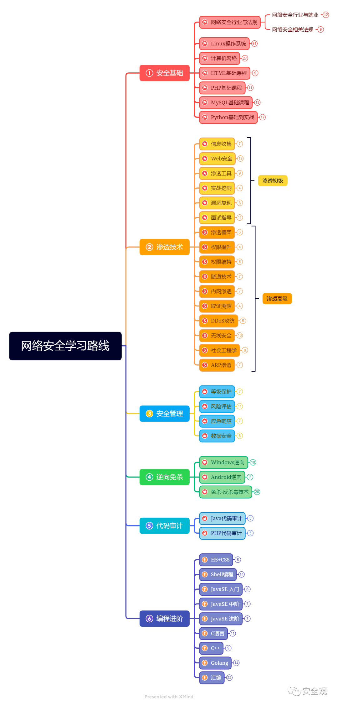 我们落到具体的技术点上来,网络安全学习路线,整体学习时间大概半年左右,具体视每个人的情况而定。