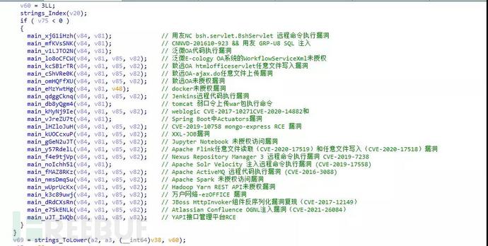 横向传播模块autoupdate,先对内网网段进行端口扫描,并识别内网的http/https对应的服务是否存在漏洞,端口扫描如图: