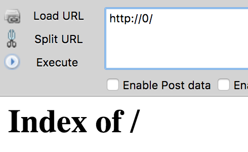 记得访问的时候加0表示使用八进制(可以是一个0也可以是多个0 跟XSS中多加几个0来绕过过滤一样),十六进制加0x
