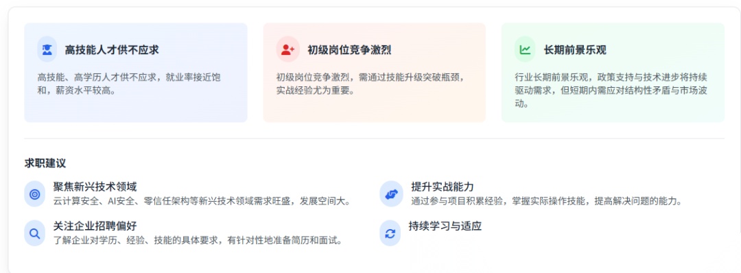 对于求职者,建议通过参与攻防演练、考取认证(如CISP、CISSP)提升竞争力,重点关注云安全、AI安全等新兴领域。行业前景广阔,但个人需主动适应市场变化,强化技能以把握机遇。