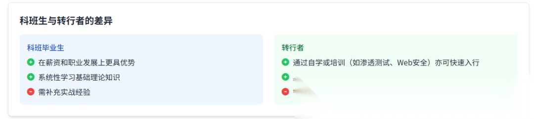 科班毕业生在薪资和职业发展上更具优势,但需补充实战经验;转行者通过自学或培训(如渗透测试、Web安全)亦可快速入行。