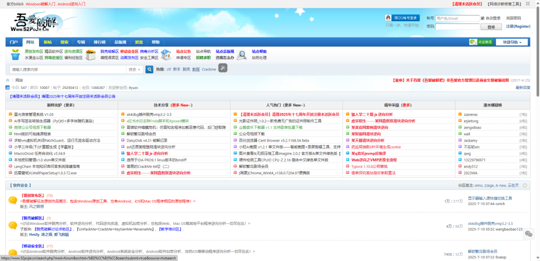吾爱破解论坛是致力于软件安全与病毒分析的非营利性技术论坛,还有很多资源软件都可以在上面找。