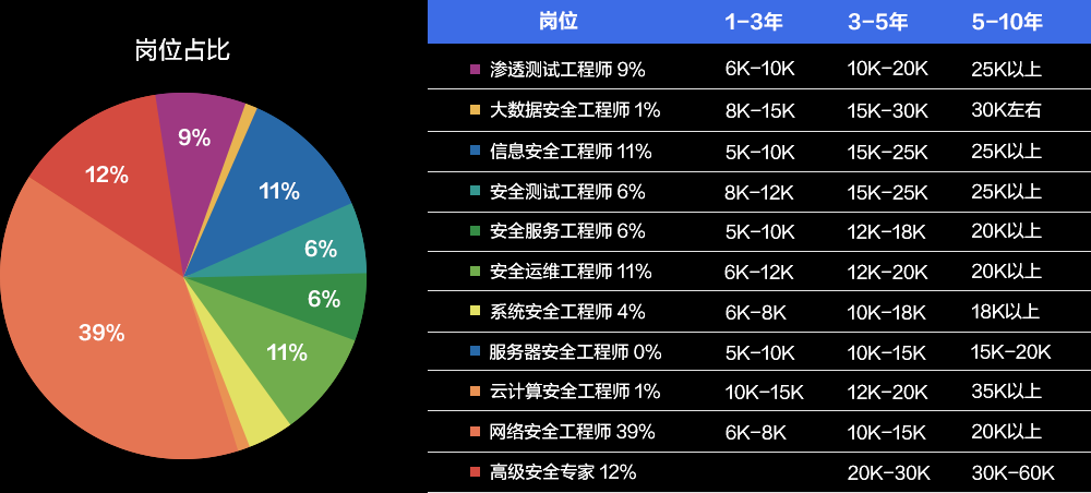 ▼网络安全相关岗位占比与薪资发展