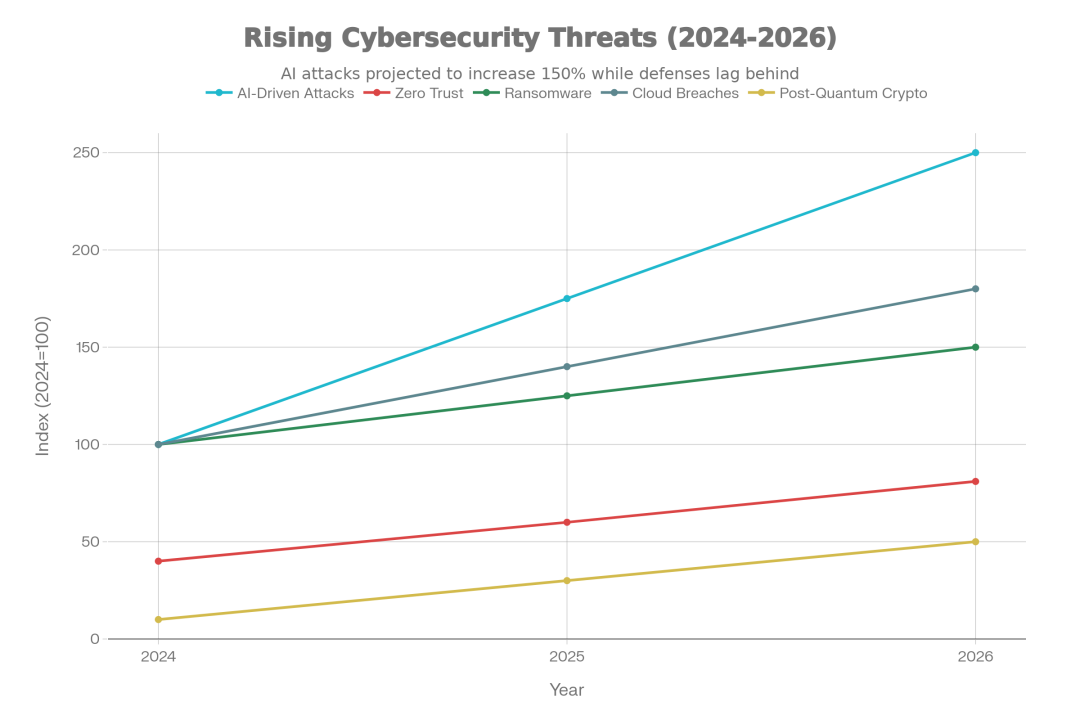 AI加强的社工与深度伪造 — 生成AI使得钓鱼活动有效性提升三倍,攻击者现可模拟个人写作风格、自动翻译钓鱼内容并生成可信的借口。Arup的2400万美元深度伪造CEO诈骗案例预示了这一趋势——2026年将见证更多针对金融交易的多渠道深度伪造攻击。