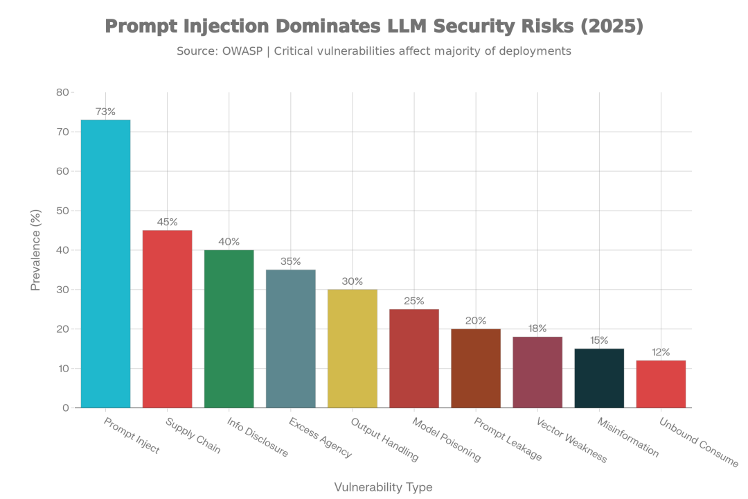 Prompt注入已确立为最广泛利用的LLM漏洞,在73%的生产AI部署中被发现。该攻击利用LLM对自然语言的固有依赖,通过精心设计的输入指令来覆盖原始系统提示,导致未授权访问、敏感数据泄露或执行非预期操作。