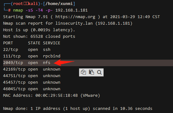 类似Windows中的网络功能,此功能默认开放在2049端口