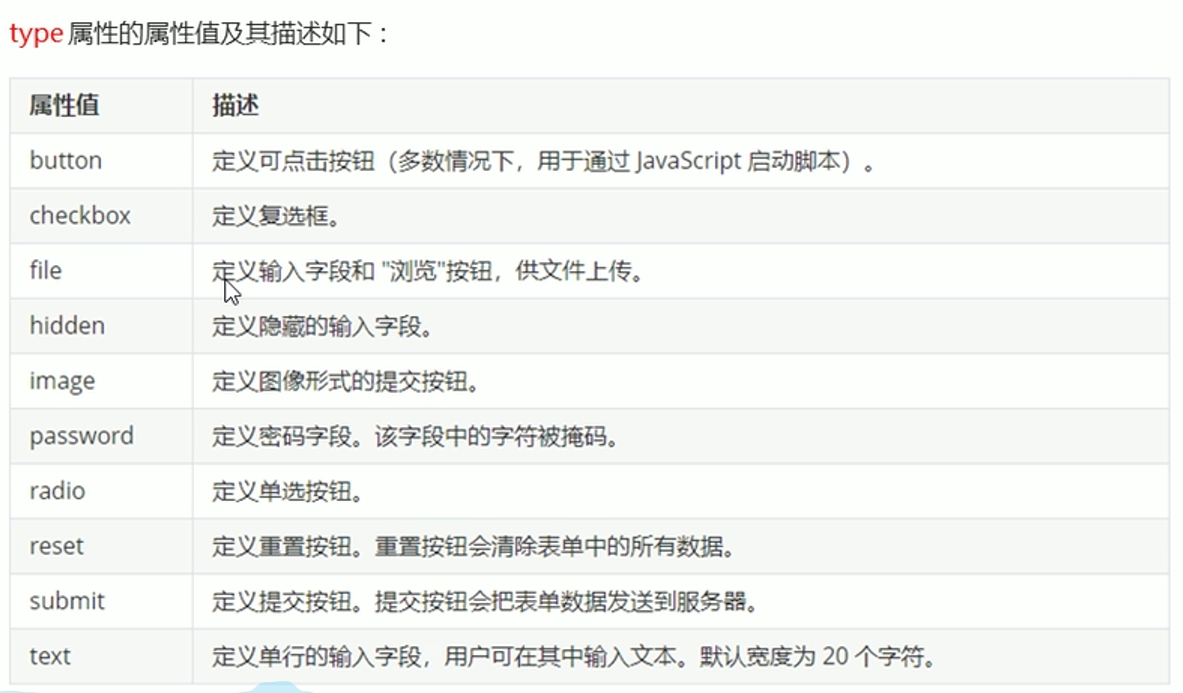 - submit属性为点击提交整个表单域的所有元素给后台服务器,显示为提交,可以通过value改变