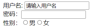 性别:<input type="radio" name=“性别” />男<input type="radio" name=“性别”/>女