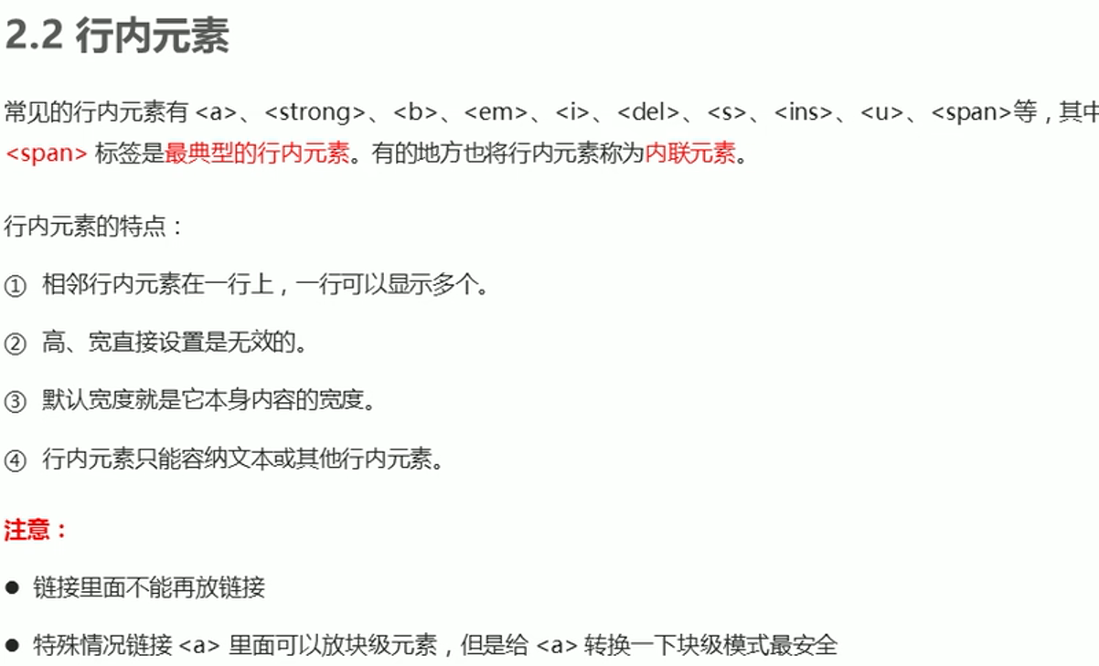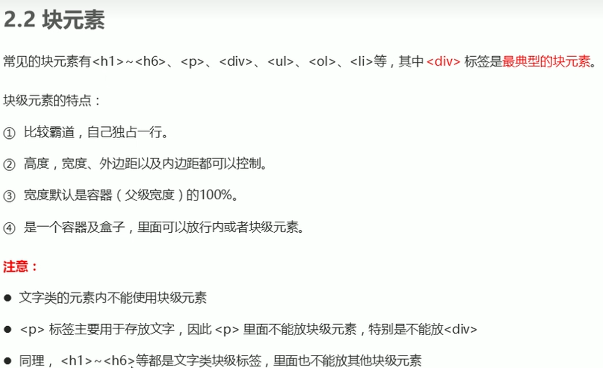- 一般情况下会在块元素中放行内元素,而不会在行内元素中放块元素