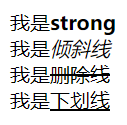 | 下划线 | <ins></ins> | 更推荐使用<ins></ins>标签加粗,语义更强烈 |