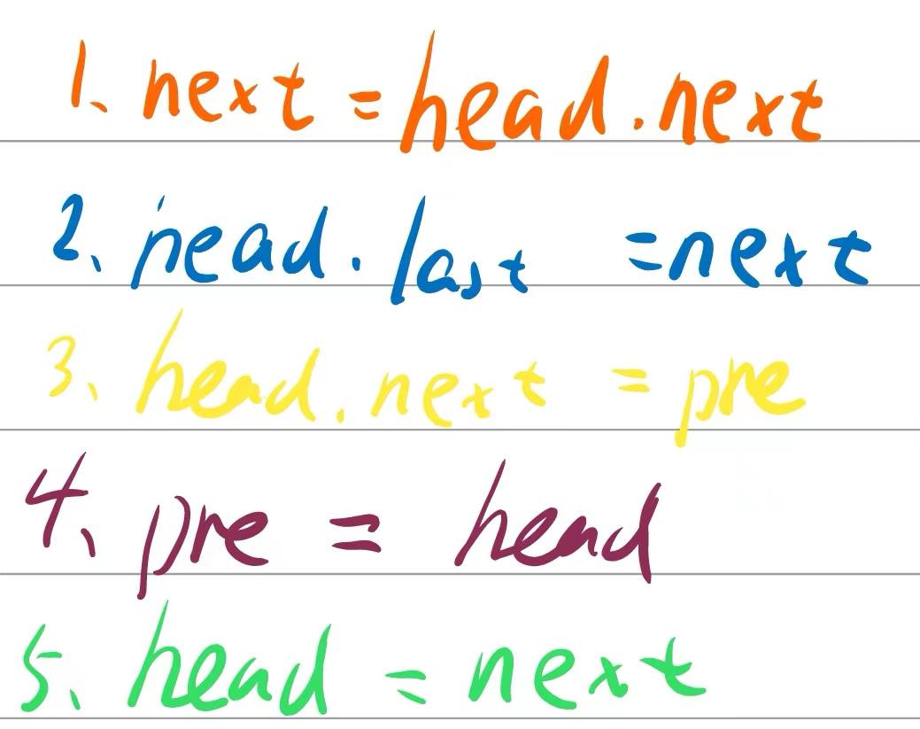 //如果仅像下面这样操作,head的vaule还是1,因为引用的传递,在上面的reverseLinkedList方法中如果在head = next;后面对head的属性进行操作,改变的实际是next的属性,因为head指向next