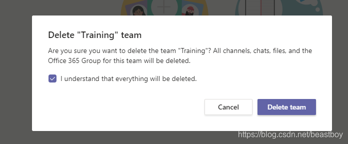 删除团队【这里实际上是删除了Office 365里的一个Group,在Exchange Online可以操作】