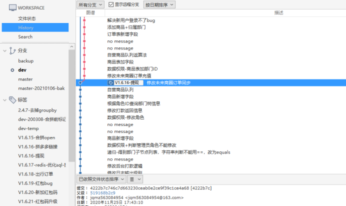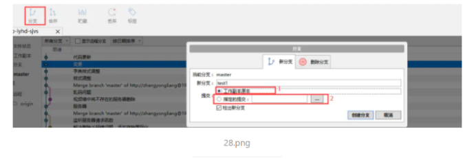 使用sourcetree创建和使用分支是很方便的,不像之前使用的TortoiseGit只能在当前代码处创建分支,使用sourcetree的方便之处: