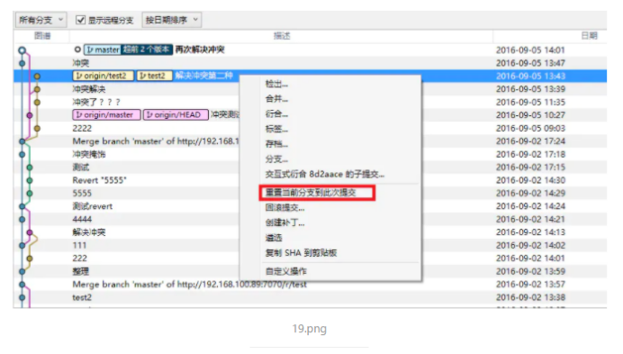 3、鼠标右键,选择“重置当前分支到此次提交”