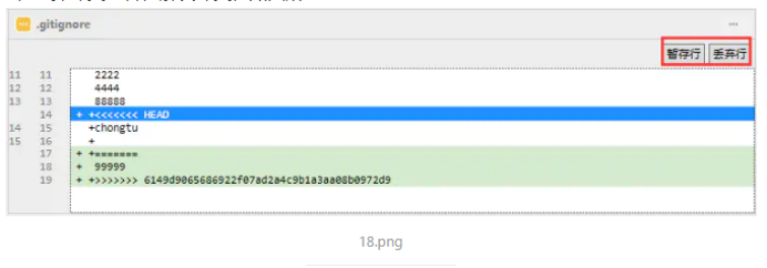 方法二:如果冲突非常少,可以直接在右侧栏中解决冲突,如图所示: