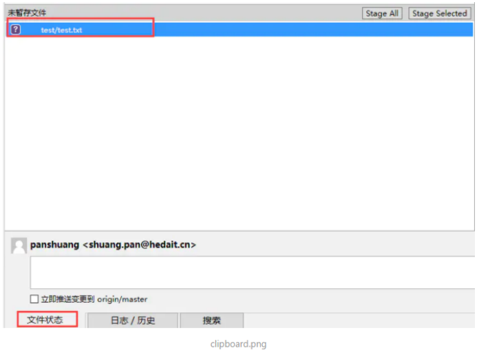 之前已经介绍过未进行版本控制的或者受版本控制的文件,在sourcetree的“文件状态” 标签中查找