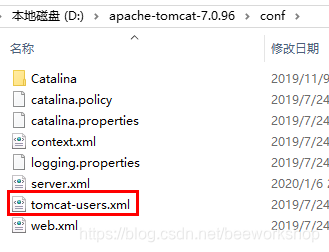 - 在<CATALINA_HOME>/conf/tomcat-users.xml中配置用户,密码和角色的映射关系。