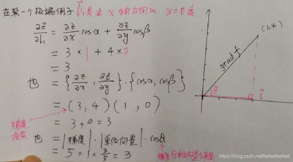 方向导数是数值, 梯度和单位向量相乘,是向量点积(参见前面的图)。