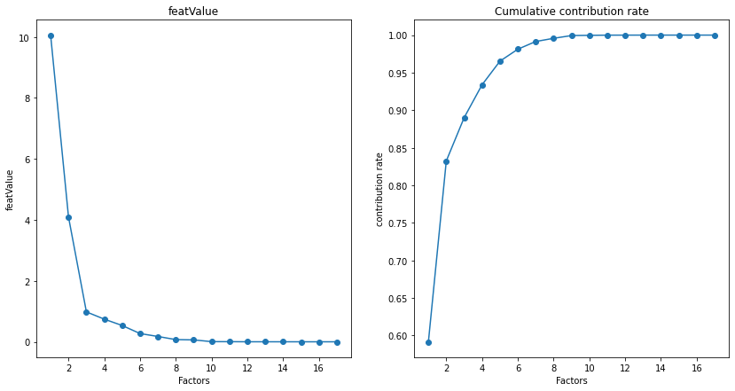 左边为碎石土,右边为累计率。从累计贡献率来看当选取三个主成分时,累计贡献率就已经达到了85%以上,因此我们选择前三个主成分。