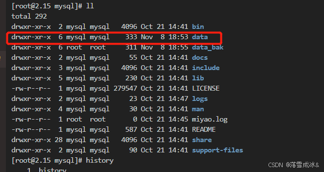 mv /usr/local/mysql/data /usr/local/mysql/data_bak
